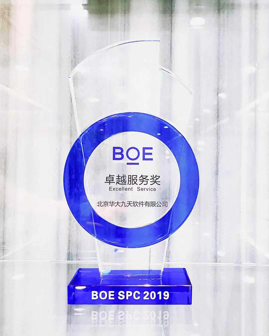 2019年11月26日,以“芯屏气/器和+ 赋能应用场景”为主题的京东方全球创新伙伴大会·2019(BOE IPC · 2019)在北京雁栖湖国际会展中心开幕。大会邀请了国内外行业专家、知名学者、行业领军企业高层等就物联网技术发展进行深入交流并对过去一年中做出突出贡献的供应商开展了系列表彰活动。华大九天从一千多家供应商中脱颖而出,成为荣获“BOE SPC 2019·卓越服务奖”的唯一软件厂商。