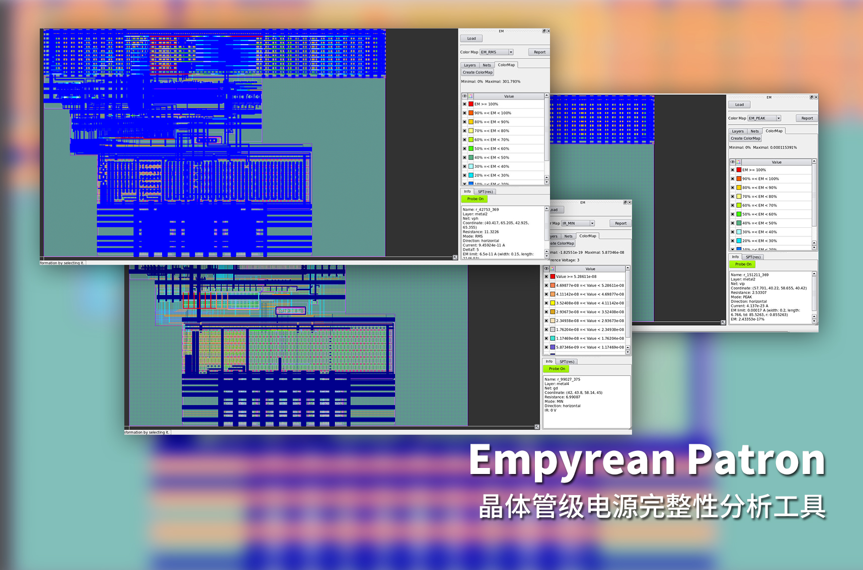 全球领先的半导体厂商Diodes公司经理Michael Zhang表示,“Diodes对华大九天的新产品进行了全面的评估试用,就工具特点而言,Empyrean Patron®提供了简洁易用且可视化的前期配置和结果浏览界面,对比我们现有的工具加速效果更为显著,值得一提的是,我们的芯片规模越大,Patron的加速效果就越明显。在实际的设计流程中,工程师们会将Patron的分析结果快速加载到内部芯片检视平台中,对分析结果进行高亮和排序,Patron独特的探查(Probe On)功能,也有助于用户提示显示分析值,以供结果审查。与我们原有的其他工具相比,这些反标功能为工程师节省了大量反复查看结果的时间。在服务方面,在我们有需要的任何时刻,华大九天专家团队为我们提供了及时有效的应用支持。”