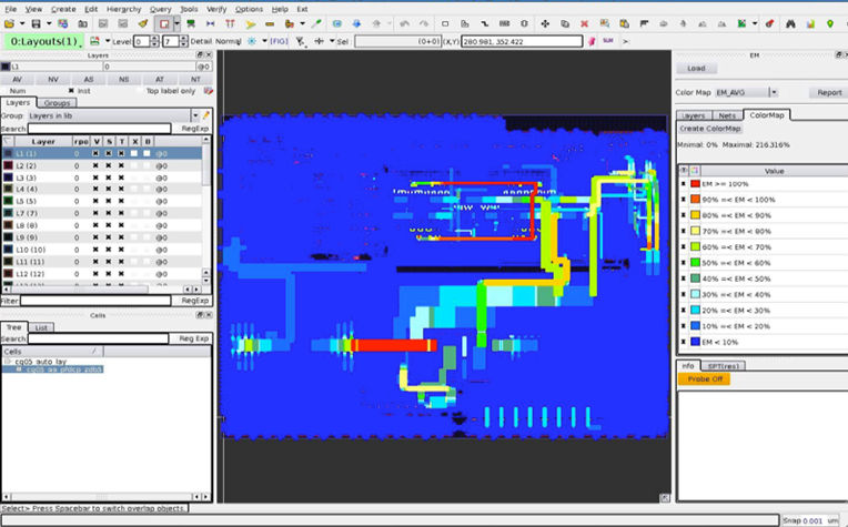 依据摩尔定律及后摩尔定律,工业界一直致力于在缩小芯片面积的同时增加内部器件数量,因此器件本身尺寸及连接方式越来越受到限制。对于低压设计、物联网设计和汽车电子产品而言,电迁移和IR-drop (EM/IR)的挑战将是严峻的。同时,由于器件/金属加热效应的敏感性,先进节点也需要热感知电磁分析。