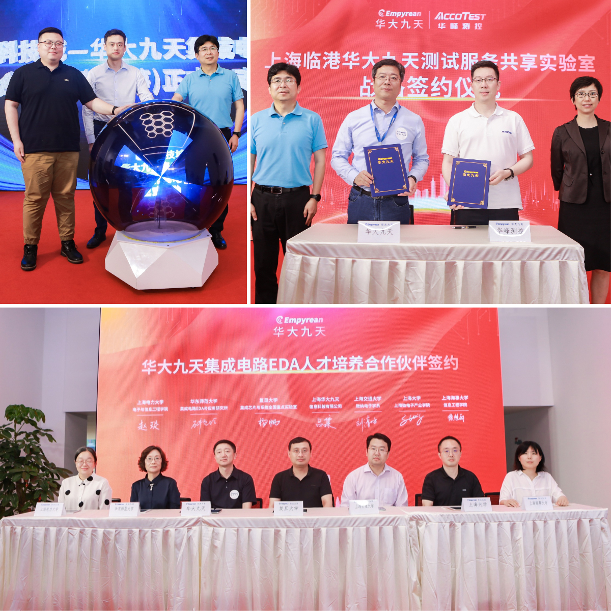 签约仪式环节,临港科技城与华大九天一起打造的临港集成电路联合孵化基地正式启动,将依靠双方的资源共同推进集成电路产业孵化工作。上海华大九天与北京华峰测控技术股份有限公司共同打造测试服务共享实验室,双方期望可以加速形成叠加优势,在资源整合、项目共建、客户支撑和产业布局等领域,创造更大的市场价值以及社会价值。上海华大九天一直以来非常重视产教融合人才培养工作,本次签约仪式上海华大九天与复旦大学、上海交通大学、华东师范大学、上海大学、上海电力大学、上海海事大学等众多高校进行集成电路EDA人才培养合作签约。未来上海华大九天也将一如既往的与高校开展深入合作,为产教融合及行业发展助力。