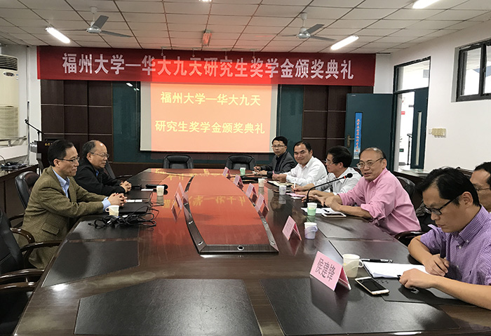 2018年10月19日,福州大学“华大九天奖学金”颁奖仪式在福州大学举行。福州大学离散数学及其应用教育部重点实验室主任范更华,华大九天董事长刘伟平、首席技术官吾立峰出席活动并为获奖学生颁奖。福州大学数学与计算机科学学院和离散数学及其应用教育部重点实验室的相关领导、老师和离散数学及其应用教育部重点实验室全体研究生参加了颁奖仪式。
